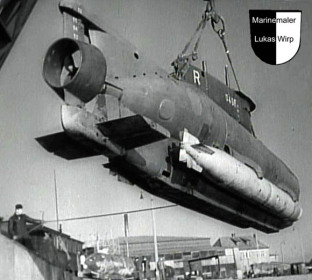 Das deutsche Kleinst - U-Boot Seehund war mit seiner 2 Mann Besatzung ab Dezember 1944 im Seegebiet des Ärmelkanal und der Themse Mündung im Einsatz. Mit einer Tauchtiefe von bis zu 7o m und den 2 seitliche angedockten Torpedos, war es eine durchaus effiziente Waffe und, aufgrund seiner Größe, nur sehr schwer zu Orten.