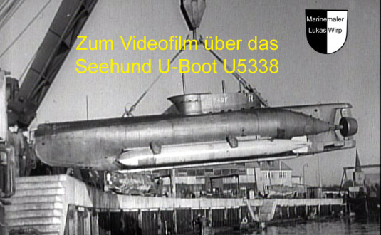 Über die Entstehung des U-Boot Seehund Gemäldes gibt es auch noch einen interessanten Videofilm. Dem Marinemaler Lukas Wirp in seinem Atelier über die Schulter geschaut: