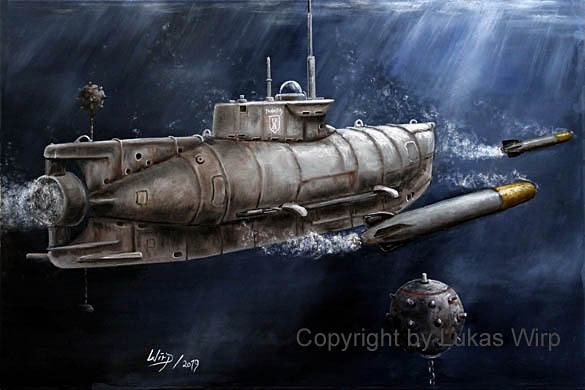 Seien Sie begrüßt zum Teil 2 des Themenbereiches "U-Boote des 2. Weltkireges". Auch hier wieder, wie schon im Teil 1, extravagante und ausdrucksstarke U-Boot Gemälde des weltweit bekannten Marine- und Militärkunstmalers Lukas Wirp.